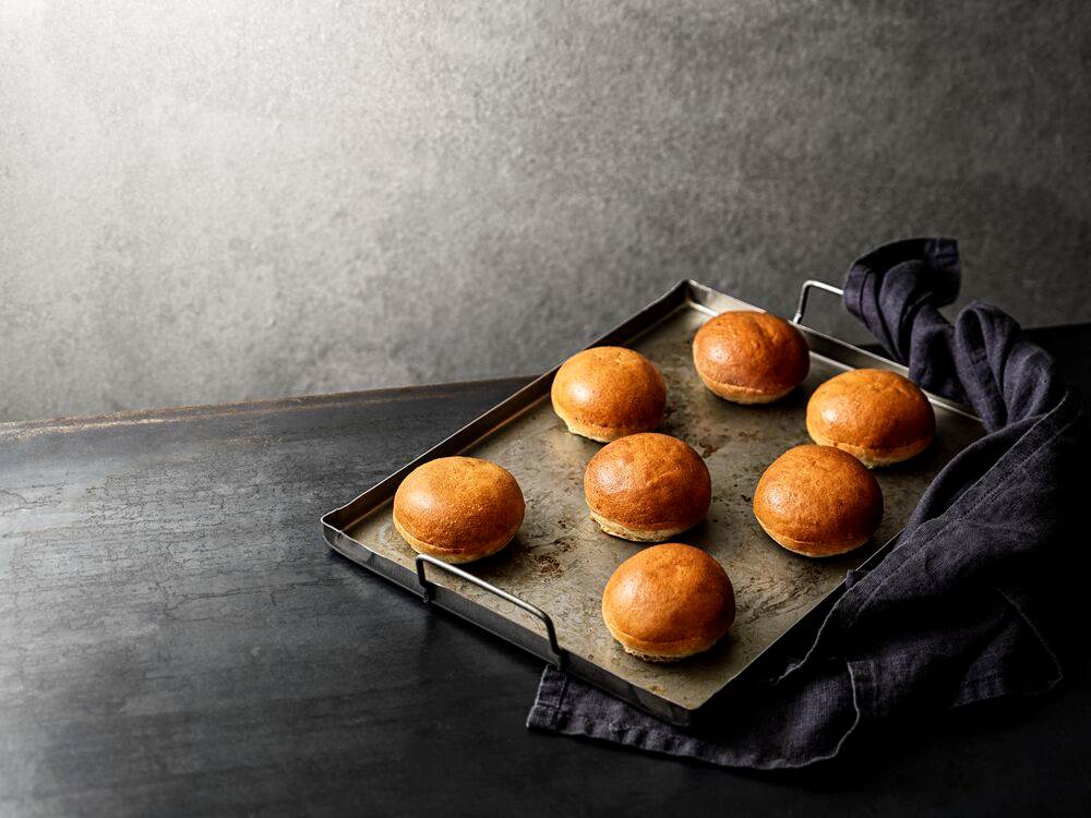 Mini hamburger bröd / Sliders bakat med potatis som ger en mild smak och mjuk textur. Brödet är skuret för en enkel och säker hantering.